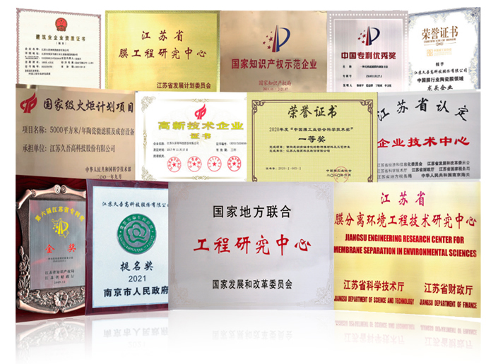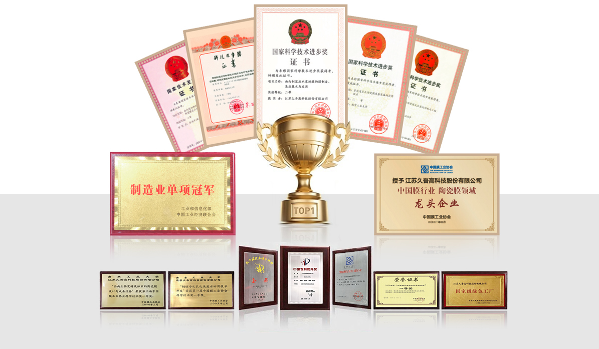公司先后獲得四次國家科技進步獎、一次國家技術發明獎公司陶瓷濾膜產品及成套裝備